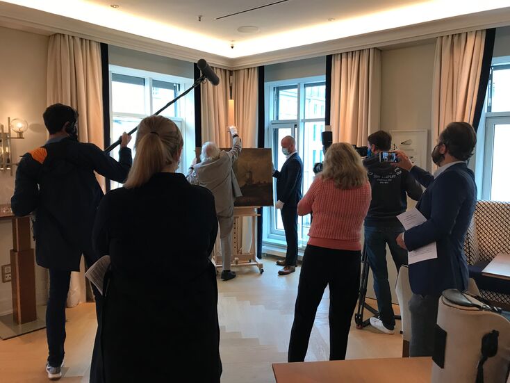 Im exklusiven Rahmen bat DECHOW diverse Pressevertreter sowie Gemäldeinteressen zur Besichtigung des vermeintlichen van Goghs „die Mühle von Wijk“ in die Hanse Lounge in Hamburg. Gegen 09:30 Uhr war es soweit, Projektleiter Jens-Peter Franz und Kunsthistoriker der Uni Kiel Prof. Dr. Kuder enthüllten das Gemälde unter Kamerablitzlicht des Publikums.